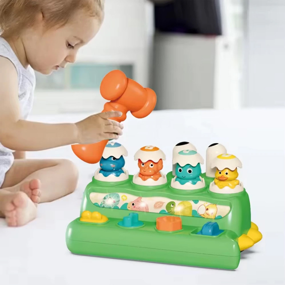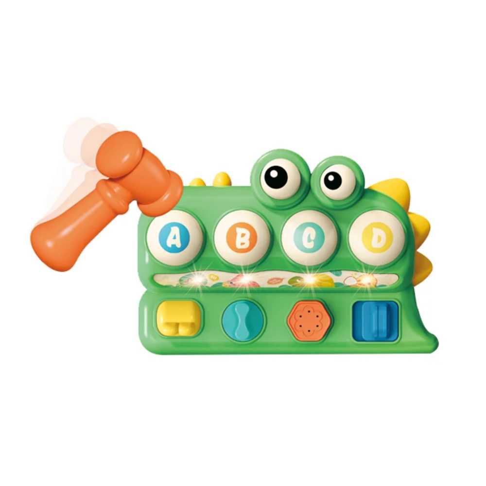اسباب بازی چکشی Bibi-irn طرح تمساح یکی از جذاب ترین و سرگرم کننده ترین اسباب بازی ها برای کودکان بالای 18 ماه است. این محصول با طراحی رنگارنگ و شاد، دکمه های متنوع، نور و صدا، باعث جلب توجه کودک و تقویت حواس پنچ گانه او میشود. کودک میتواند با چکش مخصوص، توپ های بالای تمساح را بزند تا صدای شادی بخش پخش شود و چراغ ها روشن شوند. این اسباب بازی علاوه بر سرگرمی، به یادگیری رنگها، حروف انگلیسی، هماهنگی چشم و دست و افزایش تمرکز کودک کمک میکند. استفاده از مواد اولیه ایمن و بدون BPA خیال والدین را از بابت سلامت کودک راحت میکند.
