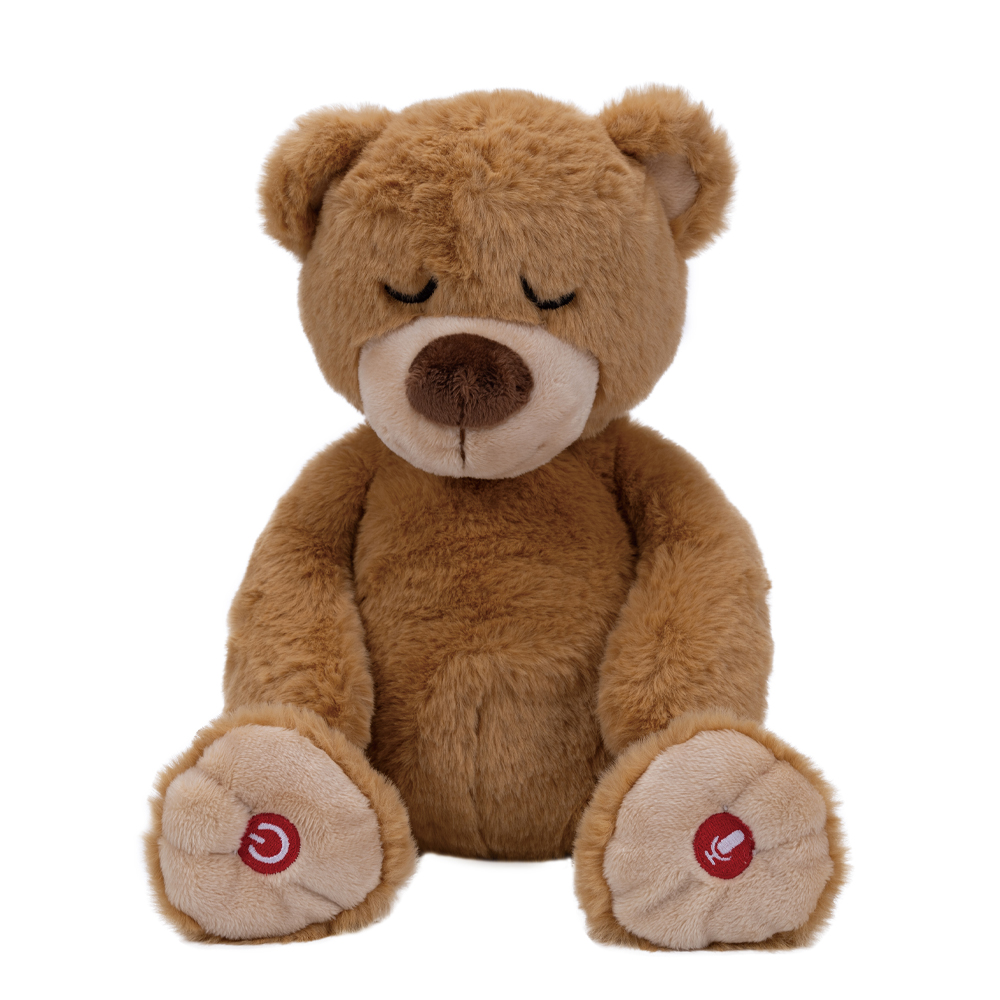 دکمه کنترلی روی دستهای خرس تعبیه شده که امکان تنظیم حالت صدا، شدت و زمان خاموشی را فراهم میکند. جنس عروسک ضد حساسیت و قابل شستشو بوده و برای نوزادان از بدو تولد مناسب است.