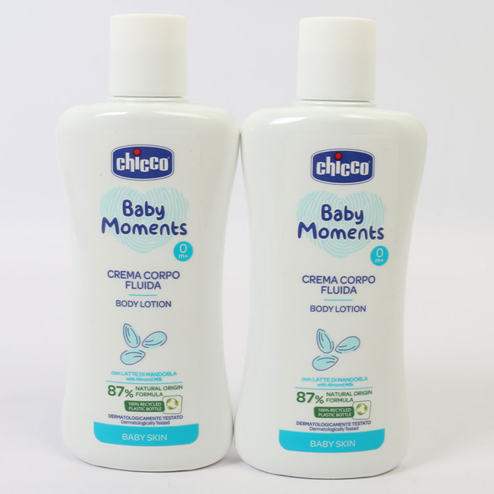 لوسیون بدن Chicco Baby Moments مخصوص مراقبت از پوست حساس نوزادان طراحی شده و از بدو تولد قابل استفاده است. این محصول با فرمولی سبک و ملایم، پوست کودک شما را نرم، لطیف و مرطوب نگه میدارد و از خشکی و تحریک پوست جلوگیری میکند.