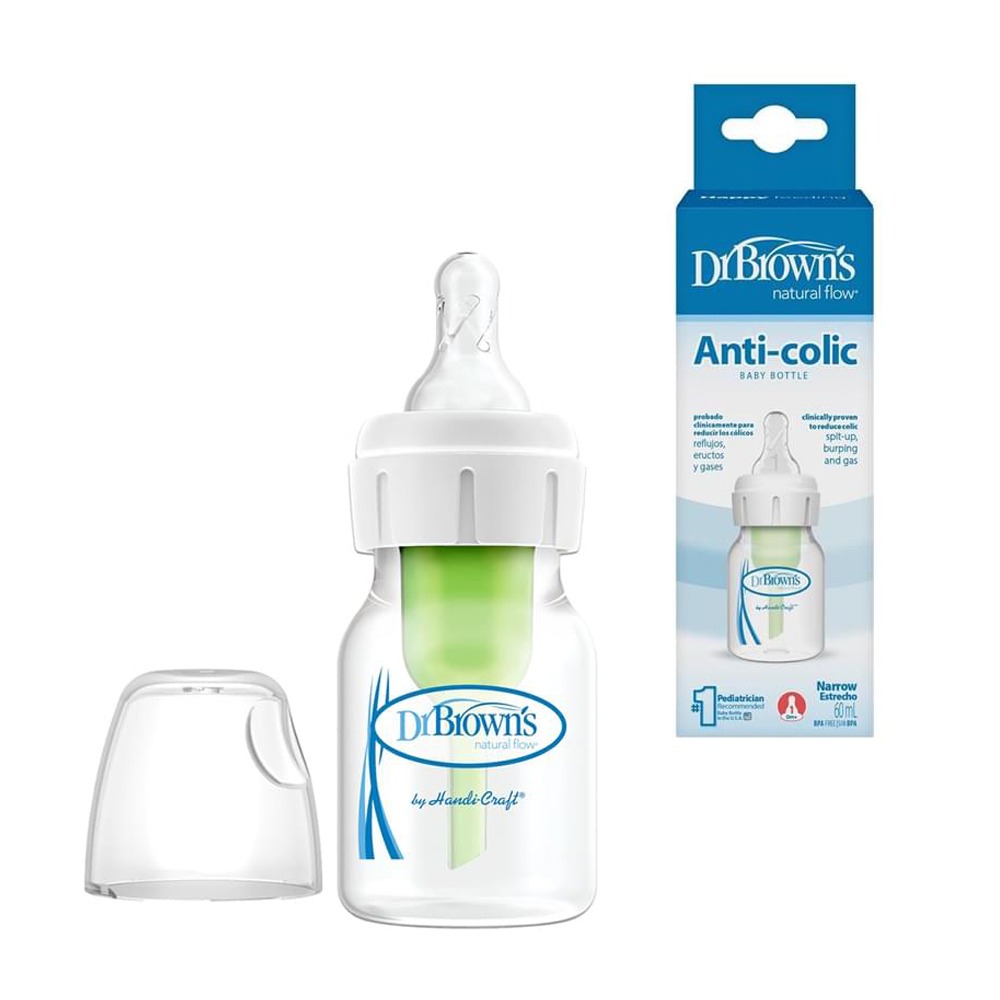 شیشه شیر طلقی 60 میلی لیتر Dr Browns انتخابی ایدهآل برای نوزادان تازه متولد شده است. طراحی ضدنفخ و سیستم تهویهی منحصربهفرد این شیشه باعث میشود هوای اضافی وارد معده نوزاد نشود و از دلدرد، نفخ و رفلاکس جلوگیری کند.