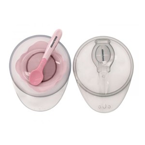 این محصول دارای یک قاشق با سری سیلیکونی نرم است و دسته ی آن ضدلغزش میباشد. روی درب ظرف یک محفظه ی کوچیک برای نگهداری از قاشق وجود دارد.